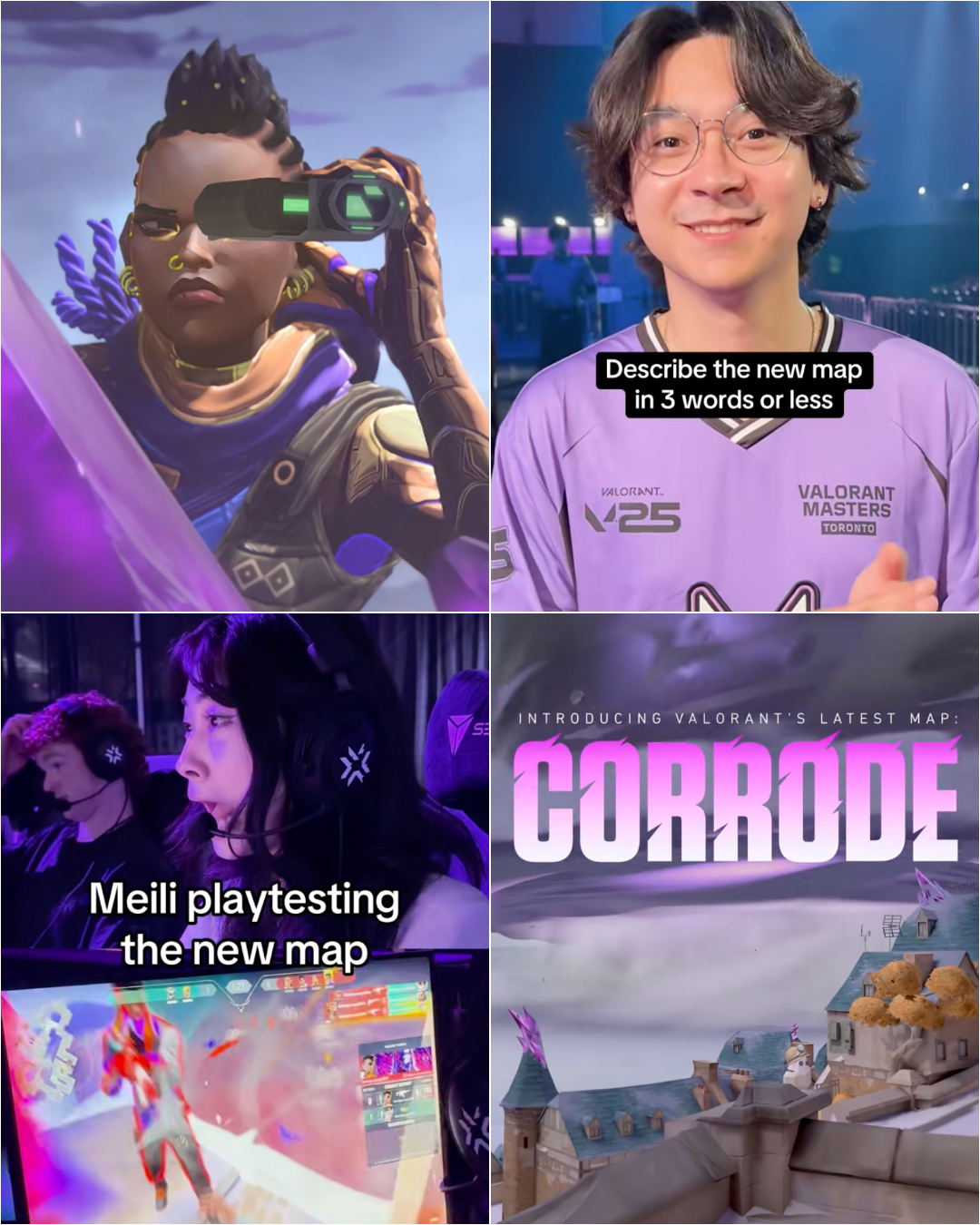 Launching a game to a new platform is one thing, but maintaining a live service game is an entirely different beast. After the successful launch of VALORANT Console, I focused on supporting the game on an “always on” angle. This included developing social campaigns to release new agents, maps, premium content bundles, and developer updates. One of my favorite campaigns that I executed was for the 2025 map release of Corrode. With it being tied to the heavily community-focused Masters Toronto Esports event, I collaborated with the Community and Influencer teams to create social tactics to efficiently target the widest VALORANT community - the people who watch VALORANT content creators. The key to this campaign was to have a balance across short-form content that, not only felt like content you would typically see from your favorite creators, but also had a level of production that only a big game can create. Across short-form video platforms alone, we delivered 60M views across our Corrode focused content.